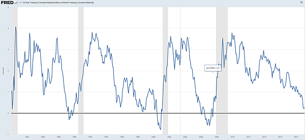 美國聯準會的最新決議超級鴿派,不僅推翻今年升息兩次的可能,將今年升息次數降為零,還宣布9月即將結束縮表,甚至提高了明年一月降息的可能性,這無疑是確認了美國的景氣即將邁入成長趨緩的階段,而Fed這一消息也導致了殖利率曲線(10年及3個月期)在2007年之後,再次發生倒掛。